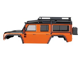 Pomalowane nadwozie Land Rover Defender Adventure Edition z kompletem fabrycznie zamontowanych akcesoriów. Ta specjalna edycja pomarańczowo-czarnego korpusu Defendera jest wstępnie wycięta, pomalowana z naniesionymi naklejkami i gotowa do montażu na podwoziu TRX-4 (324mm). Nadwozie jest w pełni zmontowane z zestawem bardzo szczegółowych części, w tym okratowaniem klatkowym, wewnętrznymi błotnikami, kanistrami z paliwem, fajką, grillem i podnośnikiem.