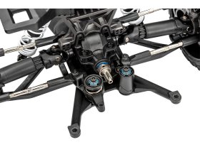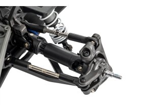 Układ kierowniczy o optymalnej geometrii ze zintegrowanym servo-saverem z podwójnym dzwonem obraca się na uszczelnionych gumą osłonach serwomechanizmów, chroniąc je przed uderzeniami bez utraty precyzji kierowania.