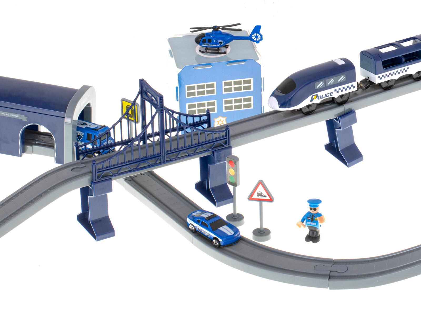 Zestaw, który łączy w sobie wiele dziecięcych pasji! Pokochają go miłośnicy samochodów, helikopterów, torów, pociągów, wyścigów i policji. Wszystko w jednej wspaniałej zabawce! Tor z pociągiem i autami dostarczy Twojemu dziecku zabawy na długie godziny. Od budowy wymyślnych konstrukcji po odgrywanie szalonych pościgów za złoczyńcami! Ten zestaw to 92 elementy gwarantujące odjazdową zabawę!