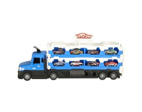 Składana laweta przekształcająca się w długi tor wyścigowy to idealna propozycja dla każdego fana motoryzacji. Z pozoru auto wygląda jak zwykła laweta, jednak nic bardziej mylnego. Rozłożona laweta to długi tor wyścigowy o ponad dwumetrowej długości, po którym mogą ścigać się dołączone do zestawu małe samochodziki. Wbudowana wyrzutnia pozwala na wystrzeliwanie aut na tor, a po skończonych wyścigach wszystkie pojazdy można wygodnie załadować na lawetę. Laweta jest zasilana 2 bateriami AA (brak zestawie), dzięki czemu zabawę umilają efekty świetlne i dźwiękowe.